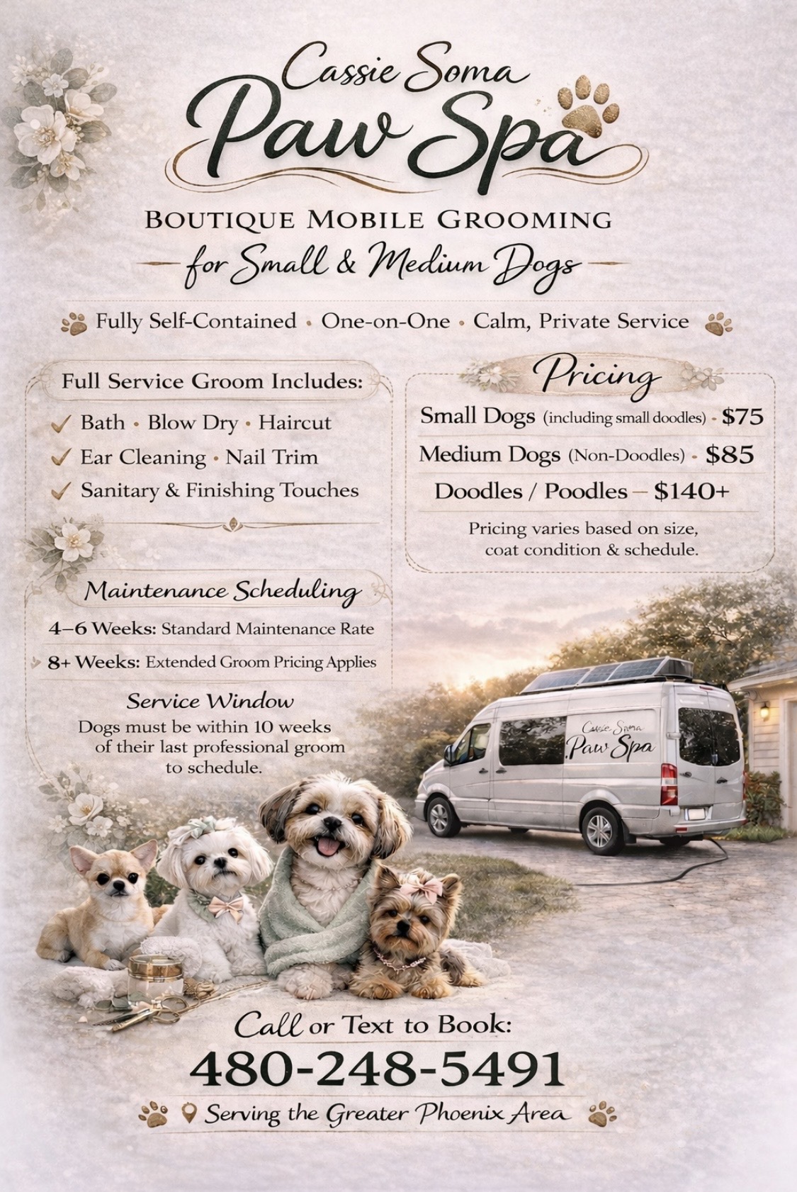 For grooming inquiries, you're welcome to reach out.